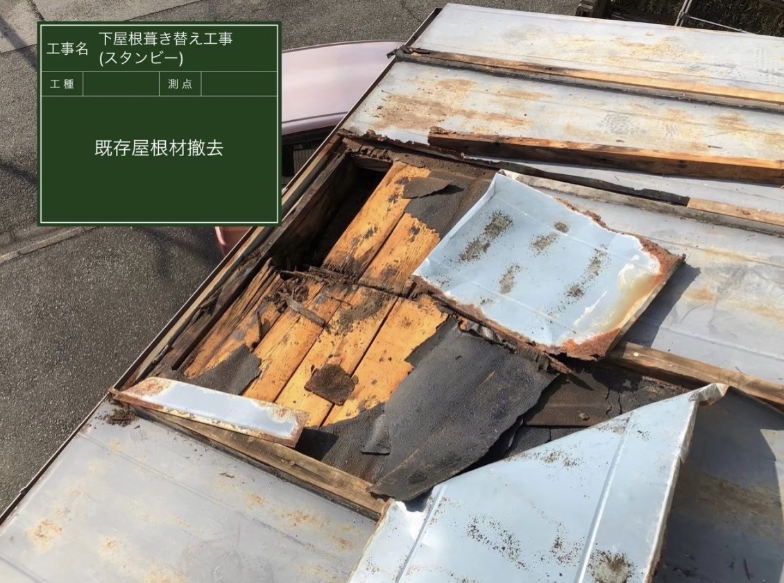 | 施工内容 | 下屋根葺き替え工事(スタンビー立平葺き) |